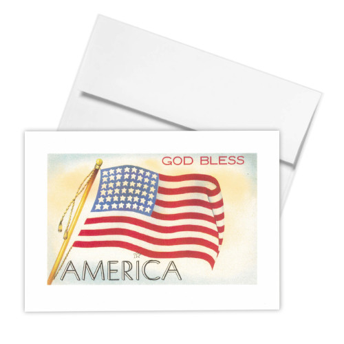 God Bless America Greeting Card This blank, folded greeting card features a sky background and a waving American Flag with the quote "God Bless America". One blank, folded greeting card with envelope Card measures 6.75 x 4.75 inches Made in the...CHF5.61 -